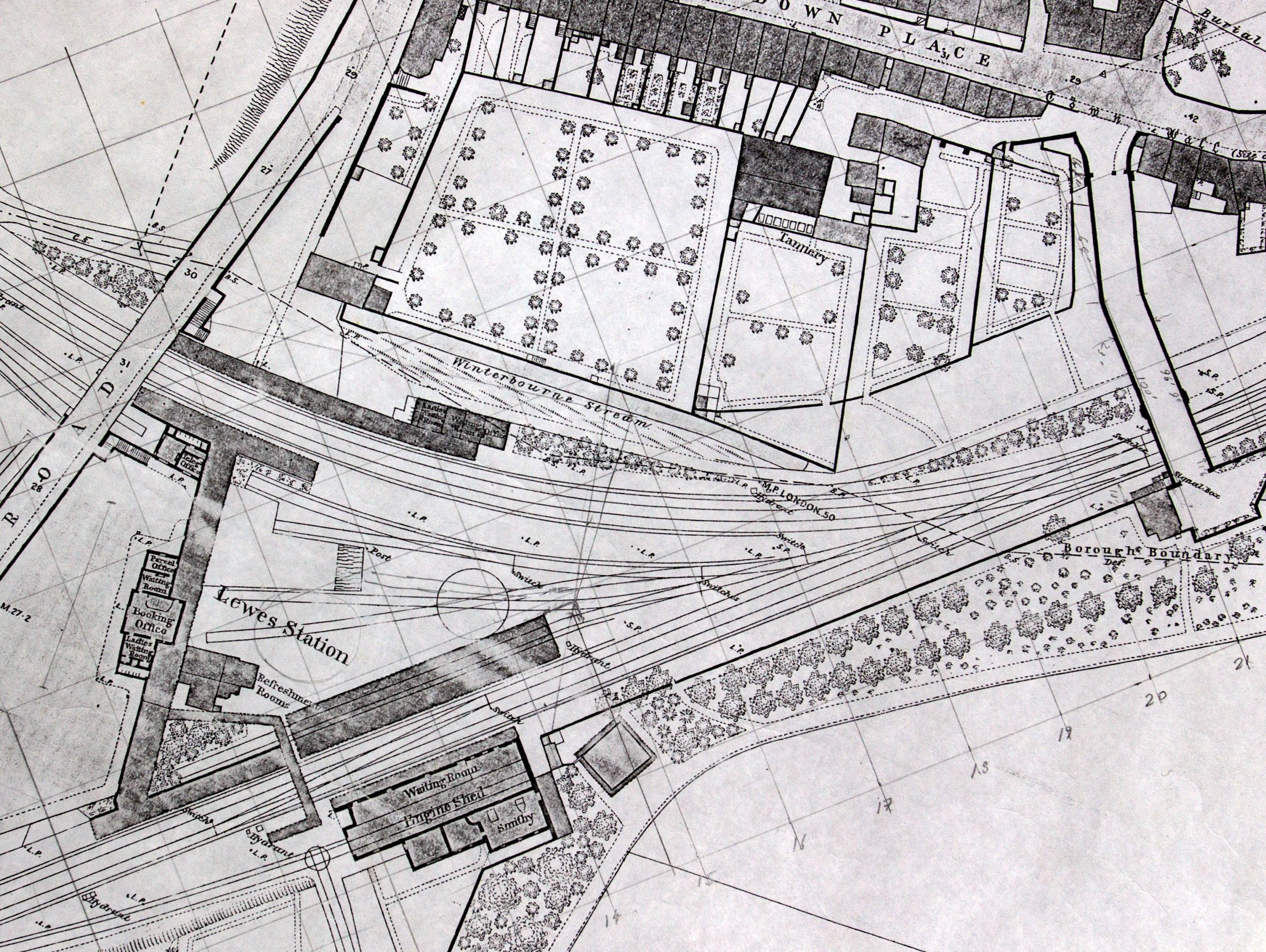The snapshot of the 1873 1:500 scale map shows very clearly the overall arrangement of track, buildings and structures. This map also provided good triangulation of building dimensional data obtained by brick counting from photographs and positions of windows and doors where no other evidence exists.